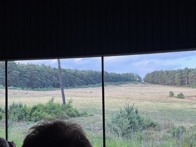 Vanuit de afgesloten wildkansel is er een prachtig zicht op de bronstweide. Aanwezige microfoons brengen het geluid van buiten naar binnen waardoor de beleving nog vollediger wordt.