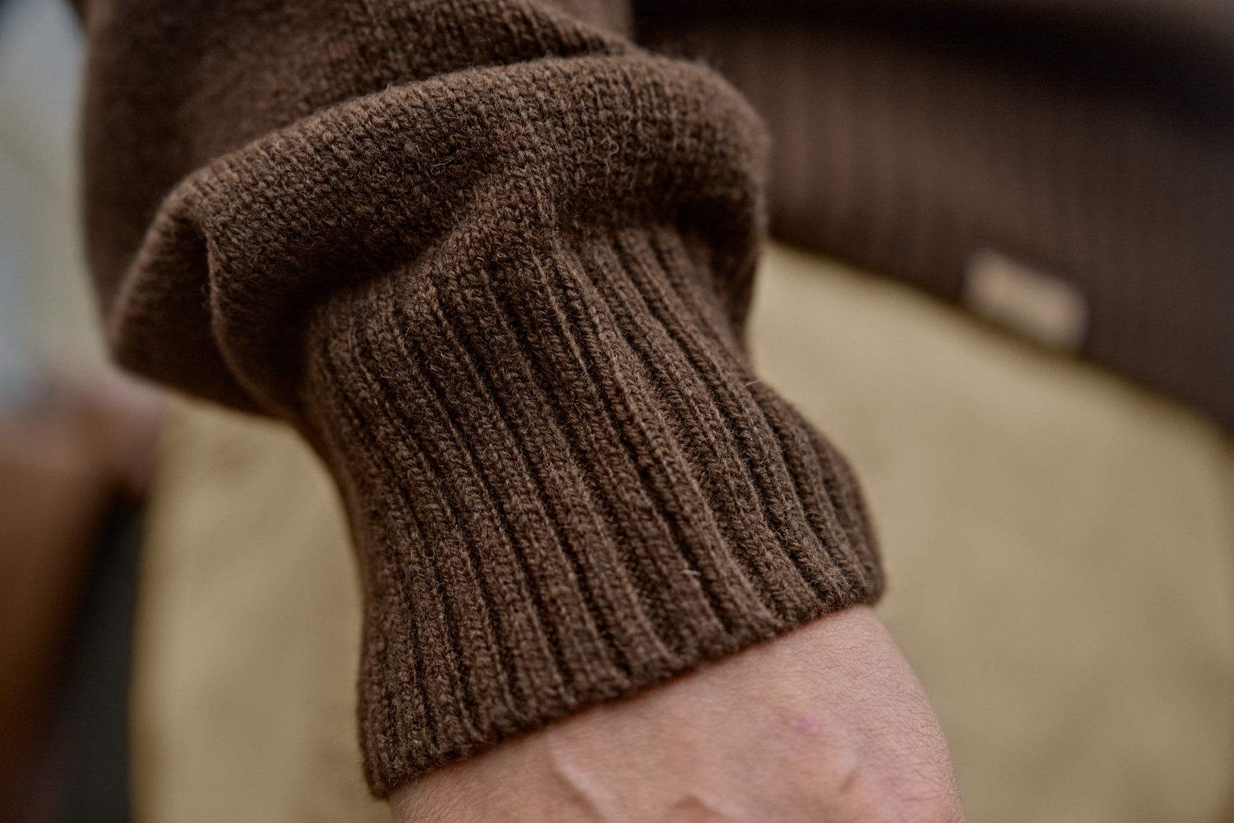 Deze trui is ook verkrijgbaar in groen (Rosin) en met V-neck in het Bombay brown.