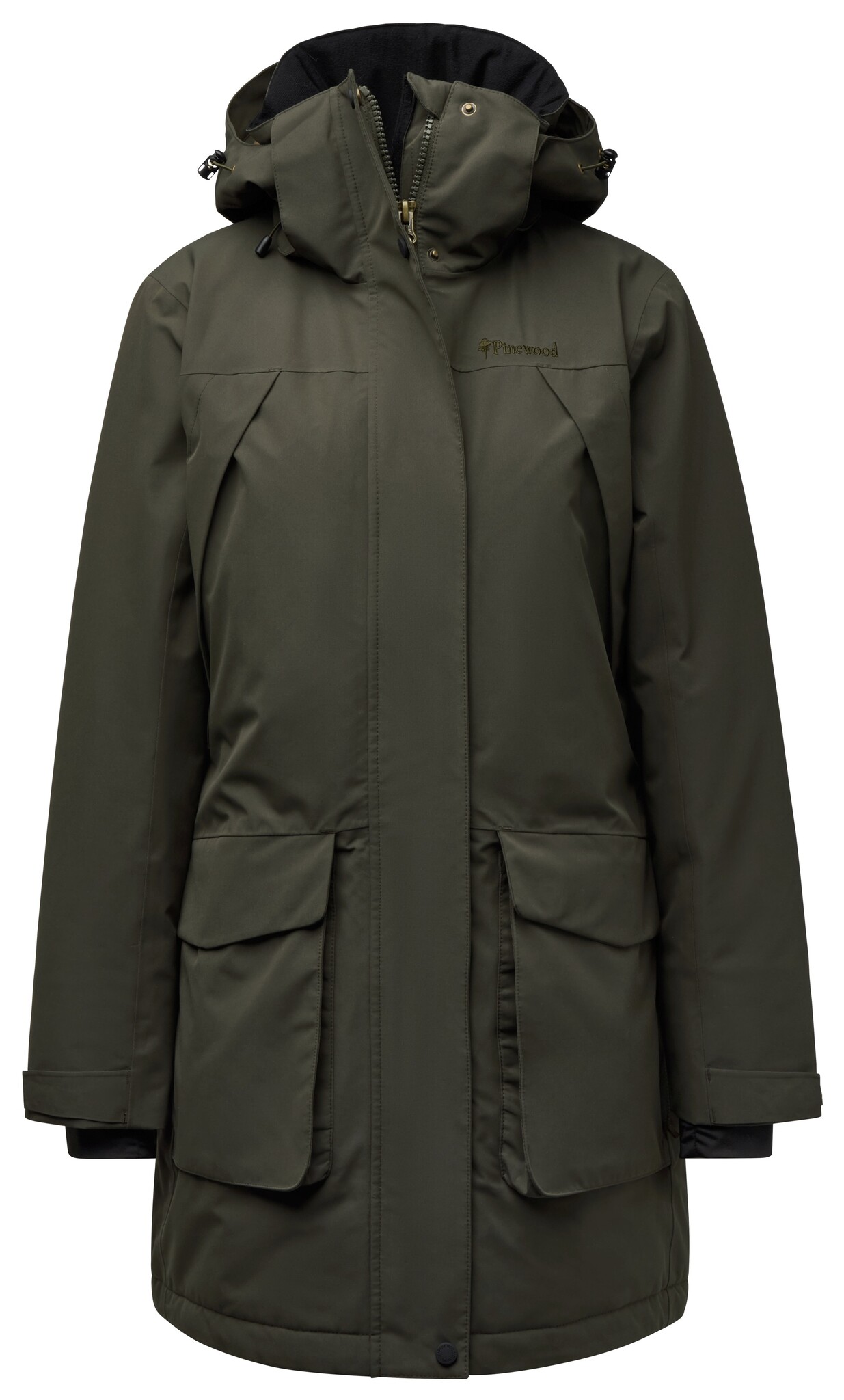 Pinewood Wilda Padded Parka W in Moss Green: wind- en waterdichte damesparka met Bionic Finish Eco, ademend membraan en ruime opbergvakken.Lees meer